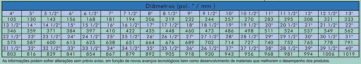 Variam de 4” (105 mm) a 40” (1019 mm)